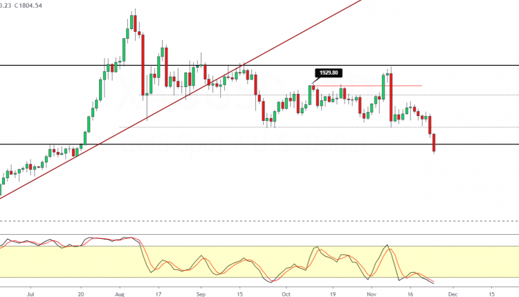 But the declines could stall as the precious metal approaches the psychological support of 1800.00.