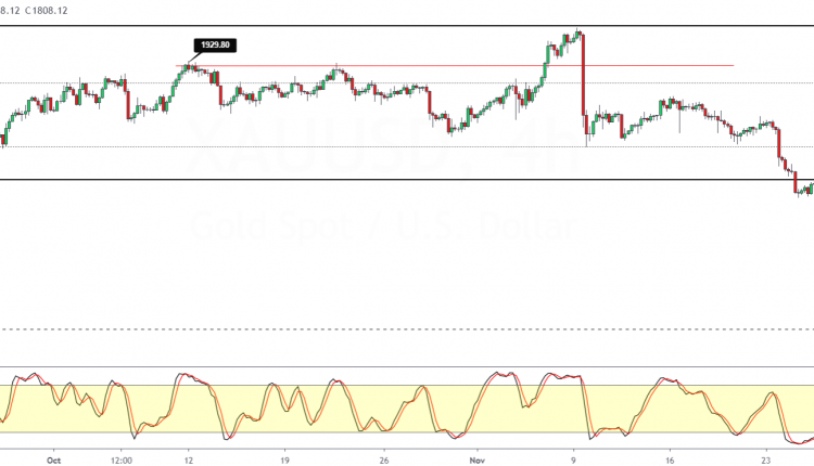 The precious metal is consolidating into a sideways range after falling below the 1817.80 level of support.