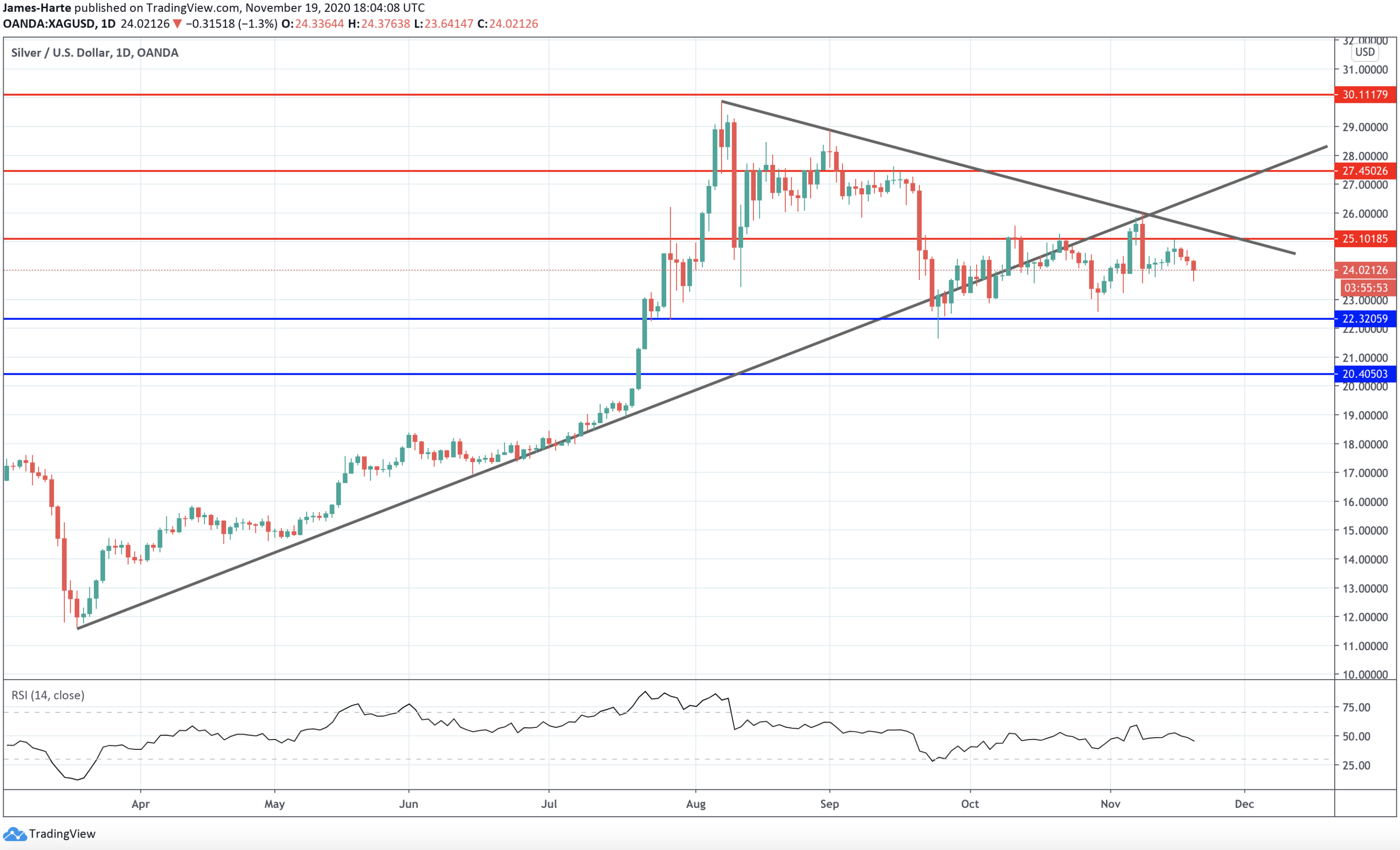 Silver Capped By Trend Line Resistance