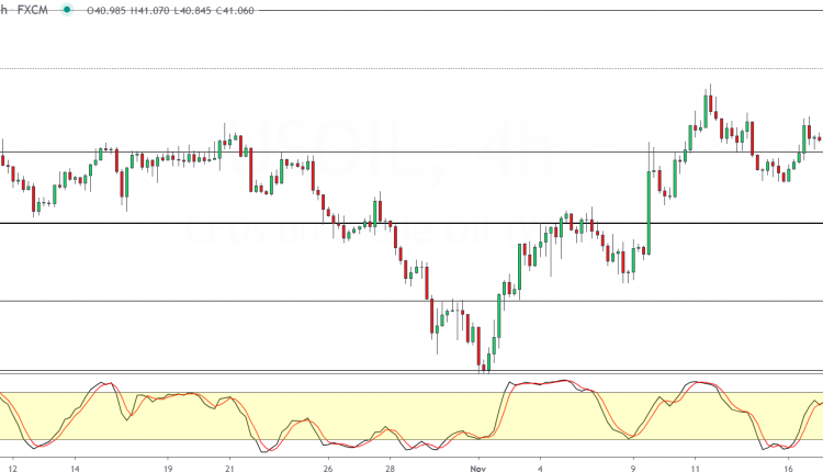 WTI Crude oil prices are trading on a softer note. Price action is pulling back to the 41.00 level of support where consolidation is taking place.