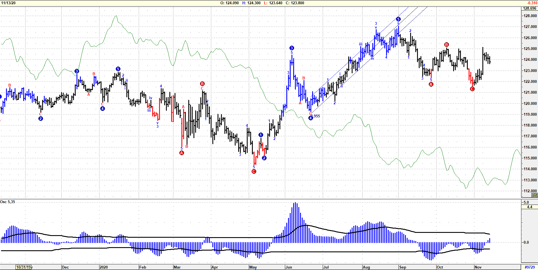 L’importante progressione rialzista proposta sul finire della scorsa ottava EURJPY ha trovato uno stop in area 125 che ha sempre mostrato forte attrattività per le quotazioni assumendo sia ruolo di resistenza che di supporto. Un eventuale rottura rialzista di questo importante livello provocherebbe boost con livello target in upside stimato appena sotto quota 127. Al ribasso, invece, quota 121.85 assume al momento garanzia di supporto e che, nel caso venisse meno, implicherebbe nuovi drop verso area 120. Da valutare la componente ciclica, in fase di flesso inferiore, pronta a riprendere la direzionalità rialzista.