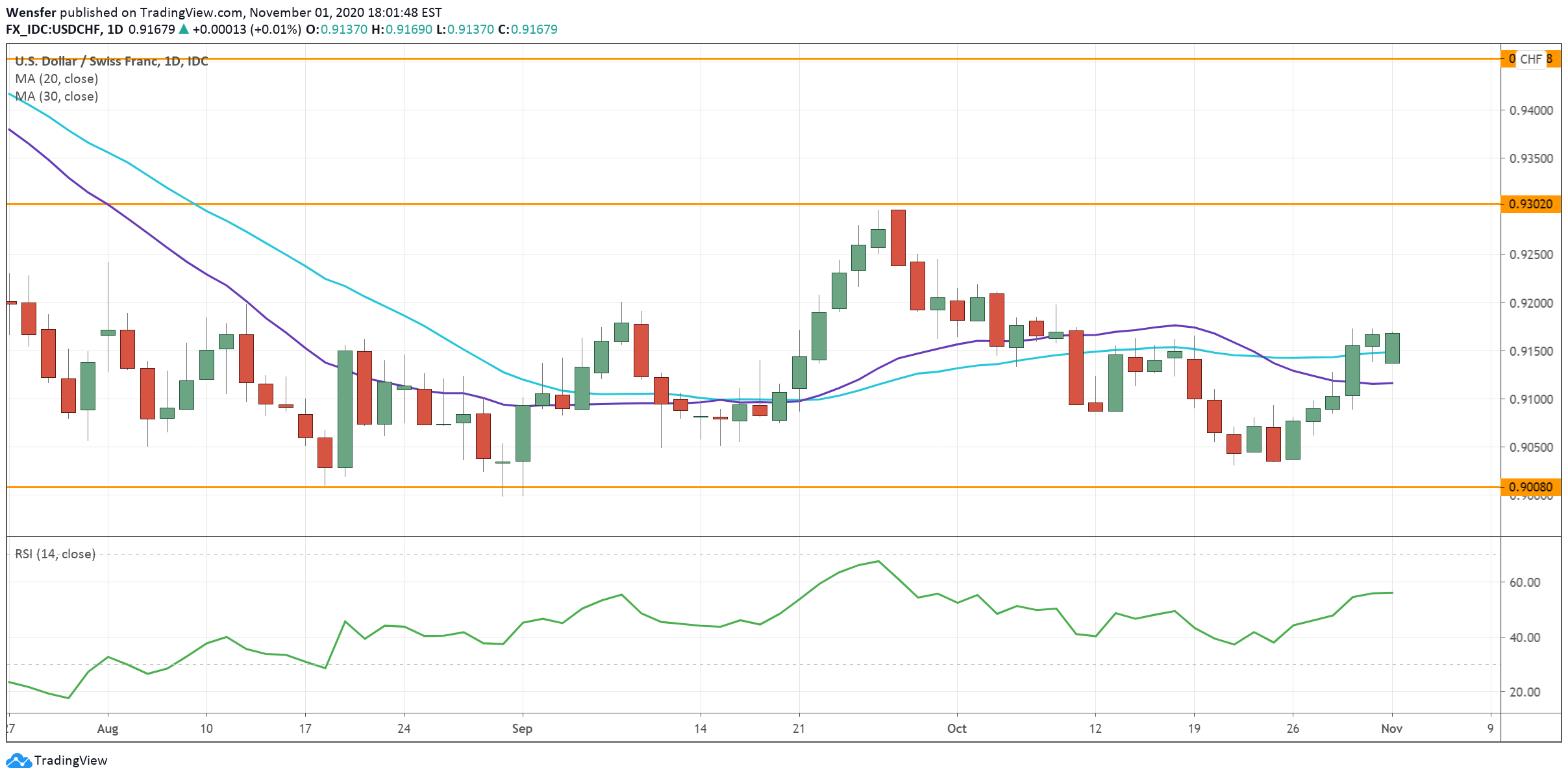 The pair has bounced back from the psychological level of 0.9000. A rally above 0.9300 could push the price towards 0.94s.