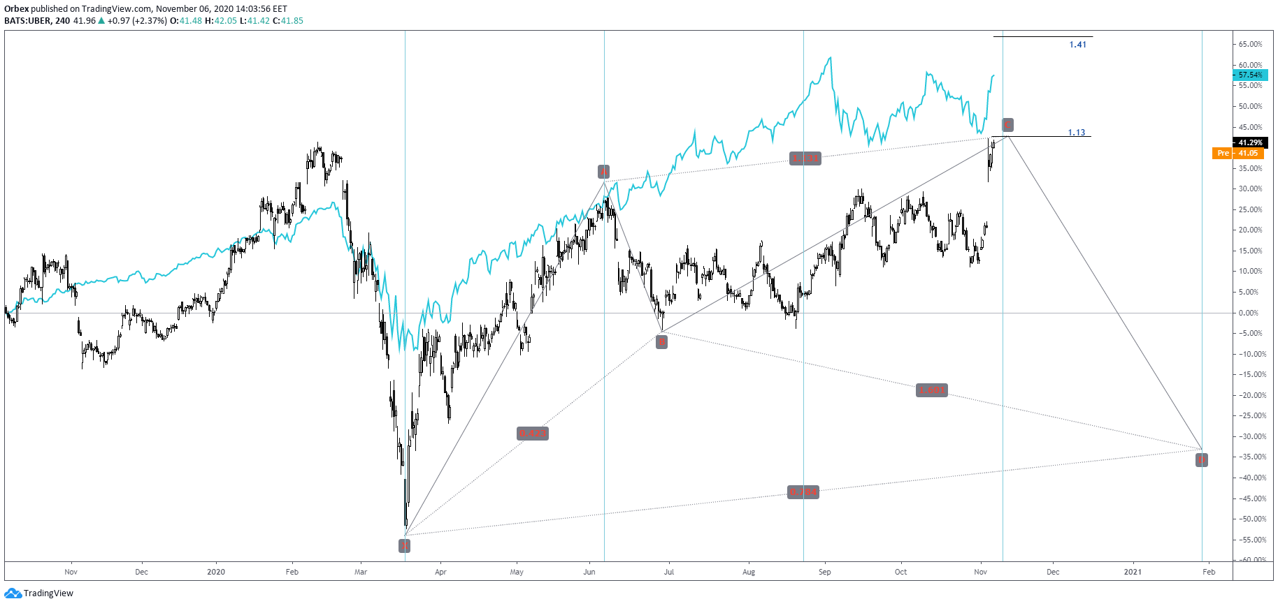 In case we break above $49.40, Uber’s pattern could turn to a new bullish sequence.