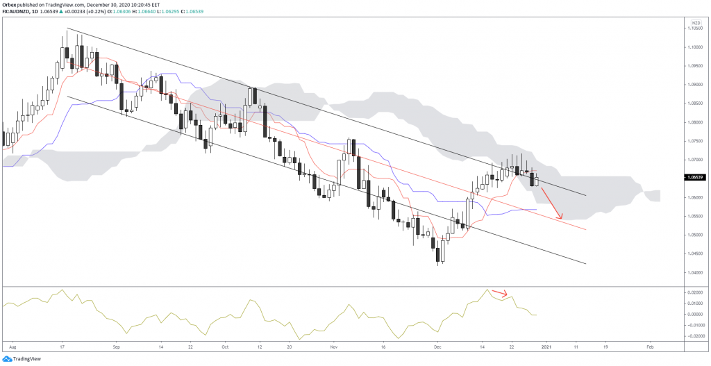 However, the specified divergence will negate if prices can push through the 38.2%, which would, in turn, lead to the 50%, which has a confluence of the base of the Ichimoku indicator.