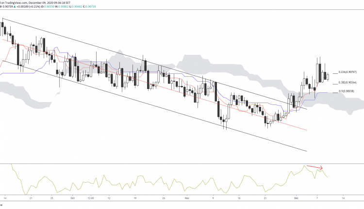 EURGBP was trading in a descending channel from when it reached fresh highs in September. Several attempts at a move towards the upside saw heavy resistance until the beginning of December when prices moved above 0.90.