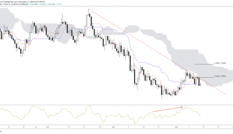A short-term perspective eyes that prices remain indecisive, hovering at the 50% of the 1.6945/1.7281 upside Fibonacci leg.