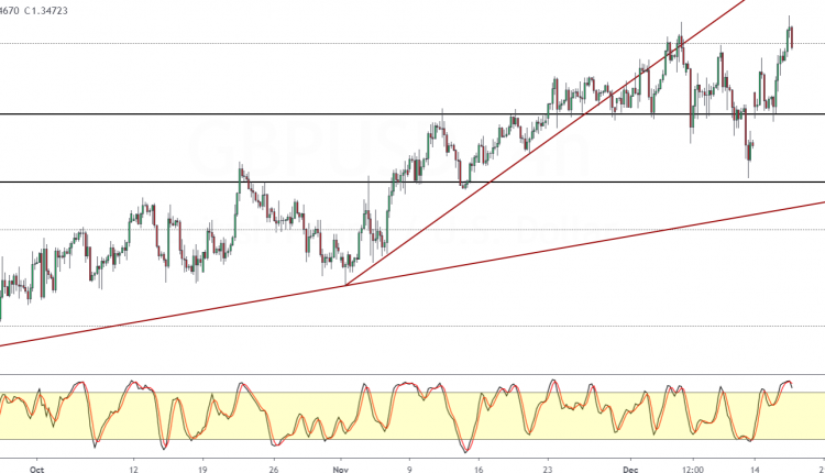The British pound sterling saw a bullish day in the markets. Price action rose to the 13 December 2019 highs of 1.3500 before pulling back.
