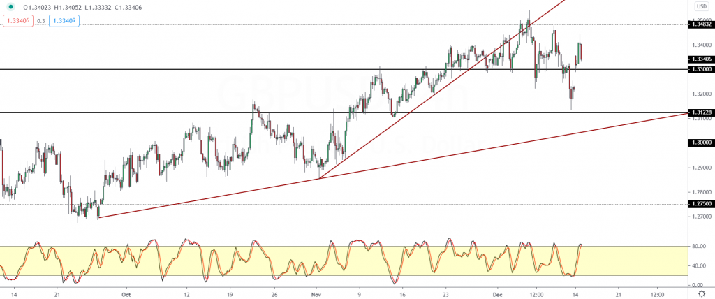 At the time of writing, the GBPUSD is close to retesting the 1.3300 level of support.
