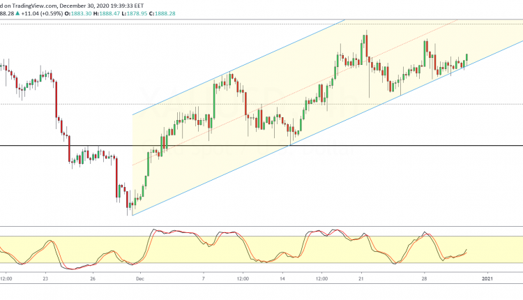 For the moment, gold prices managed to find support from the lower channel line of the rising price channel.