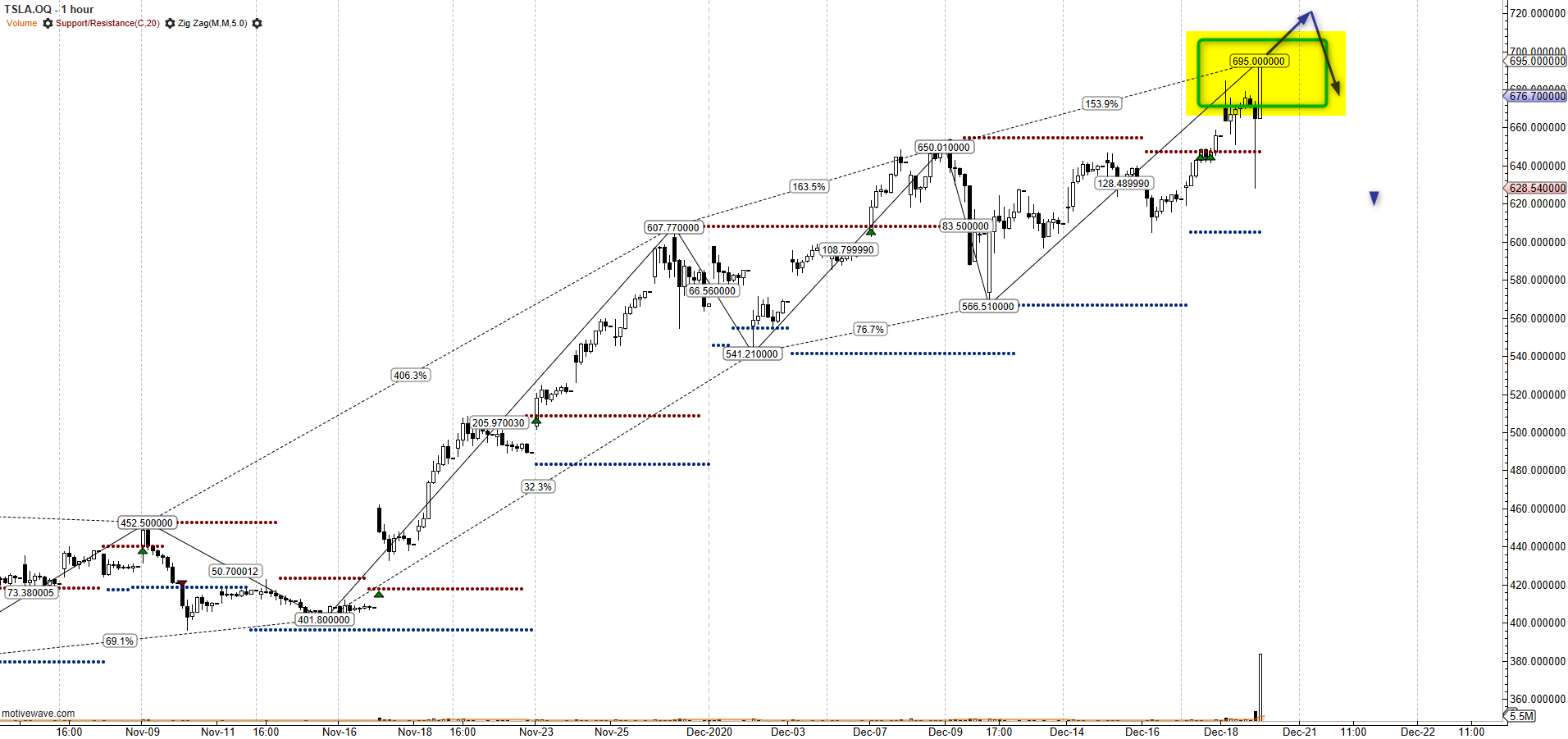 Tesla segna nuovi massimi in regime di autoalimentazione del trend rialzista in atto da lungo tempo e costantemente ridefinito in termini parabolici.