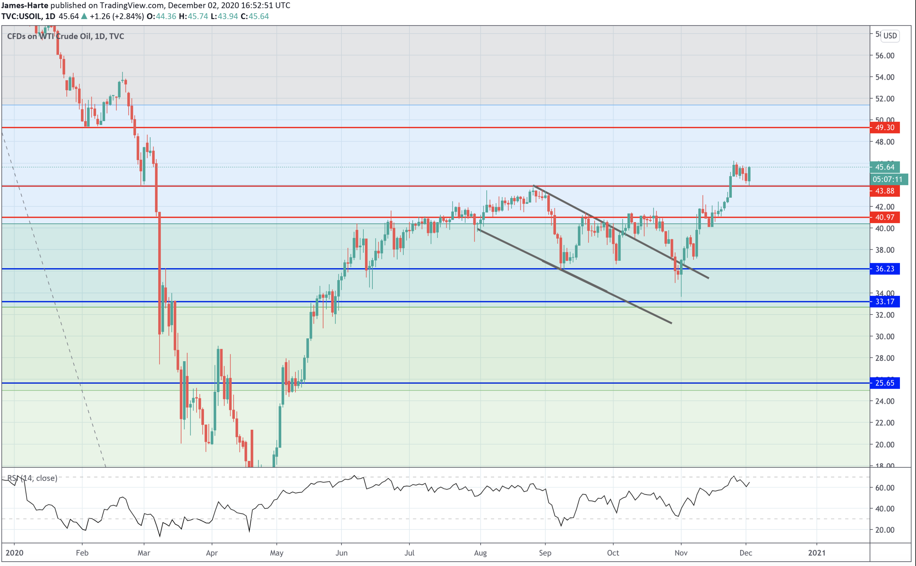 Crude prices have been helped higher again this week by the continued improvement in risk appetite. Markets are focusing more on more on incoming vaccine news.