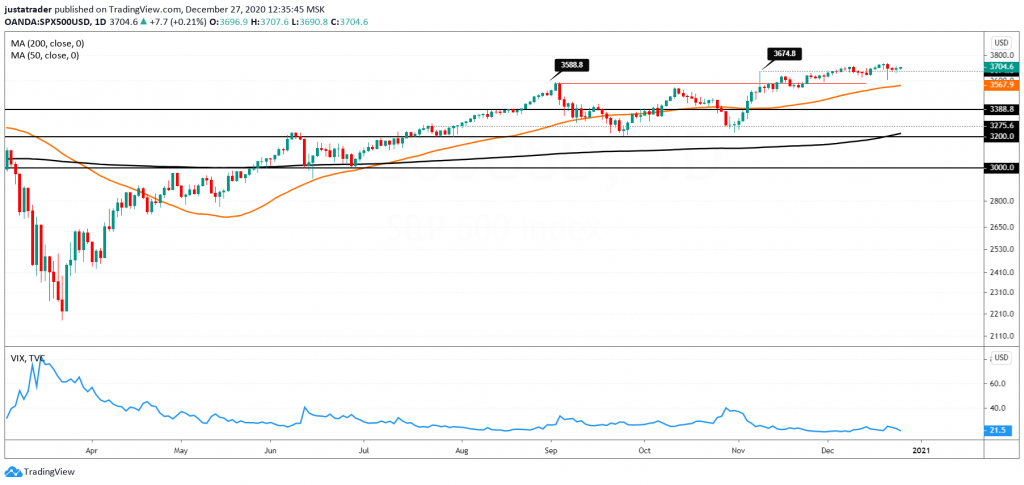 Over the week, the leading US equity index briefly traded below the 3674 level before price was rejected. There was no seasonal Santa Claus rally with the equity index.