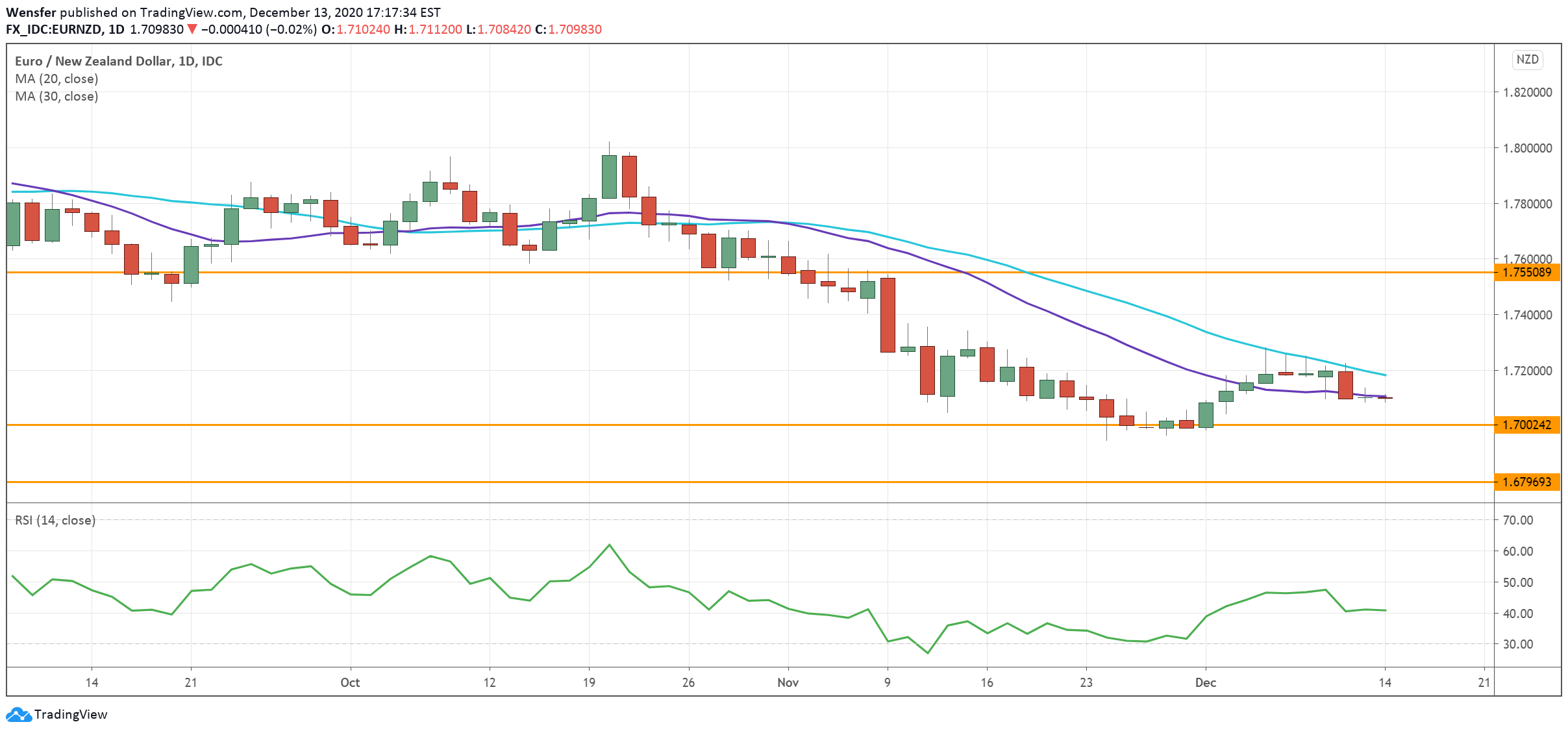 1.7000 acts as a psychological support level but a bearish breakout could send the exchange rate to 1.6800.