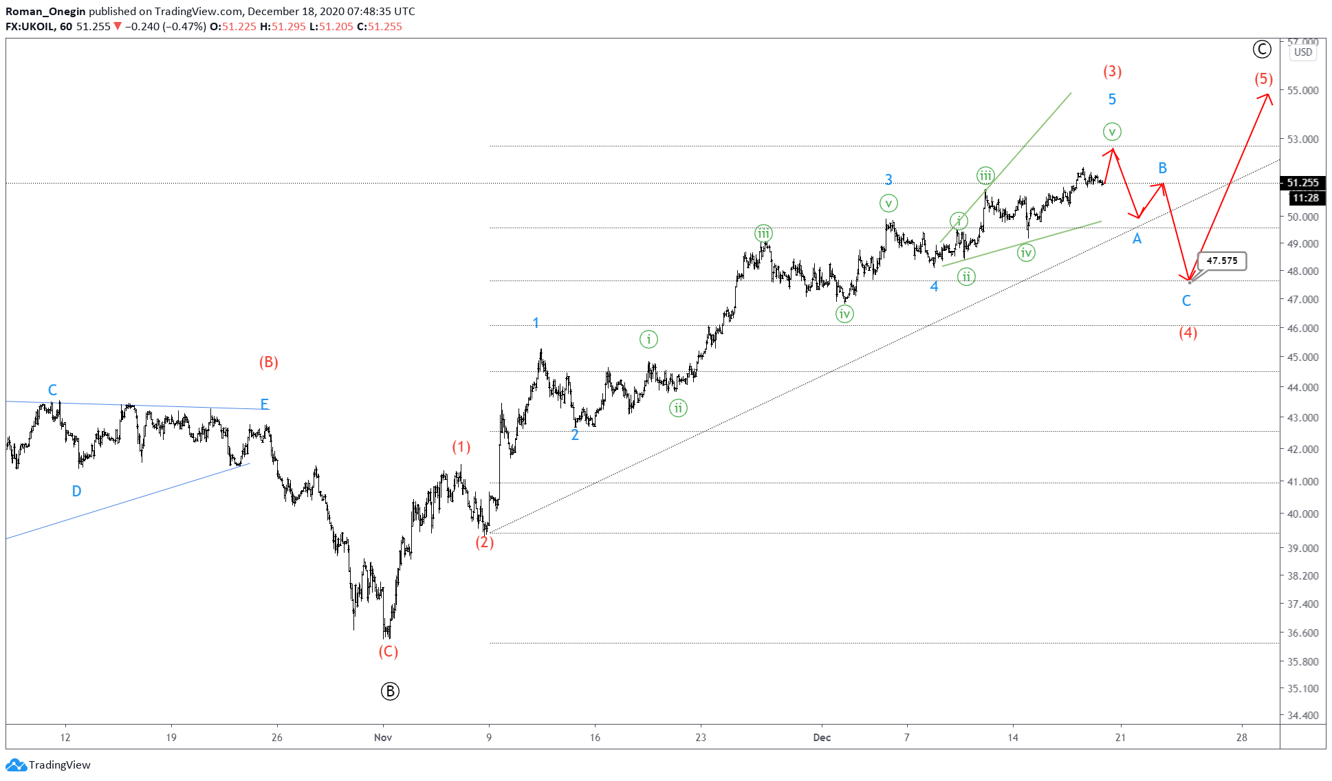 Finally, the end of the intermediate correction is expected near 47.57. At that level, wave (4) will be at 38.2% of impulse (3).