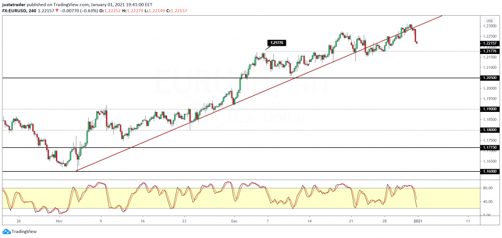 If the current declines continue, the euro could be looking to test the 1.2177 level of support.