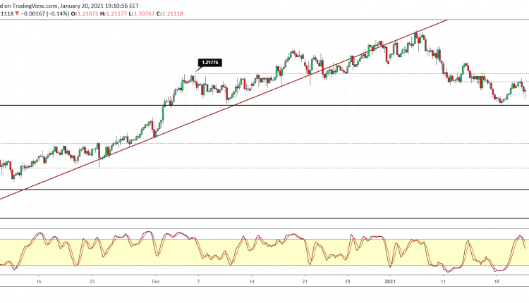 At the moment, prices remain stuck within the 1.2144 resistance and 1.2050 support. With the stochastics oscillator moving out from the overbought levels, we expect to see a retest back to the 1.2050 level, a bit more firmly.