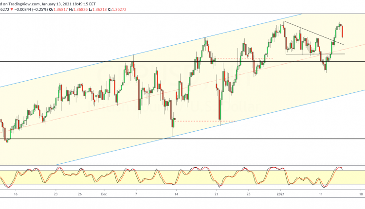After briefly rising close to 4th Jan highs near 1.3702, the cable gave back the gains intraday. This has led to a bearish close.