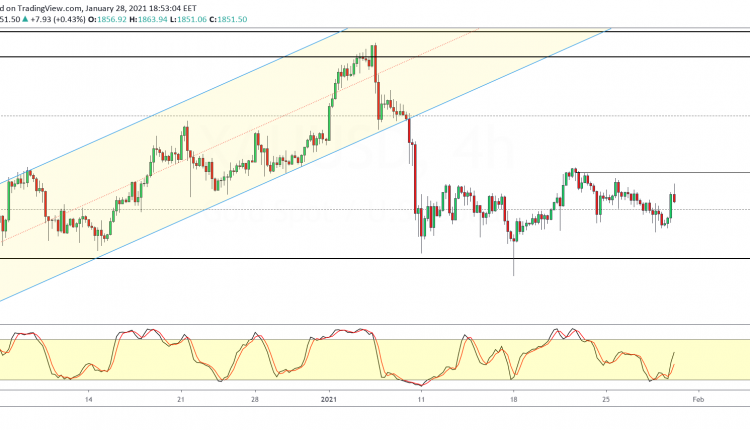 However, the pace of the rebound remains weak and we could see price losing the 1850 handle once again.