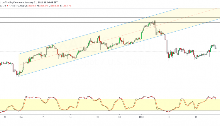 For the moment, price action in gold remains flat in anticipation of the news. The current pullback could see gold prices retesting the 1850 level.