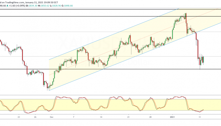 The bias remains to the downside for the moment, but that could change if gold prices manage to rise above the 1850 handle.