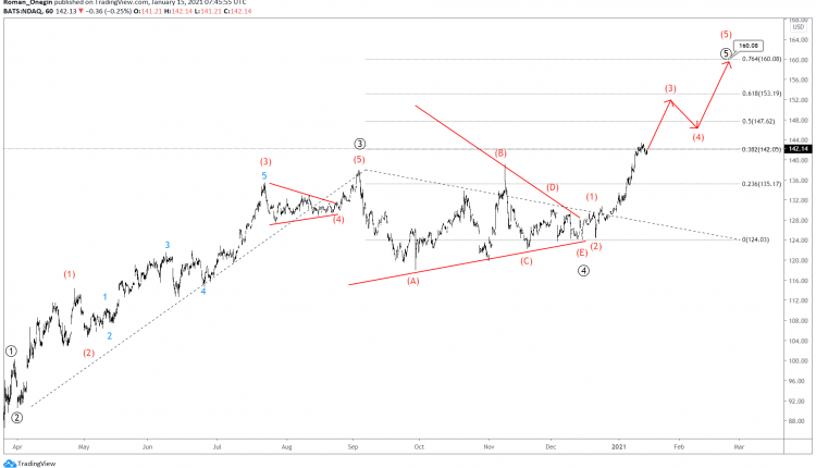 NDAQ seems to be forming a bullish impulse consisting of primary sub-waves ①-②-③-④-⑤.