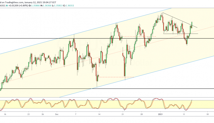 The gains saw the GBPUSD breaking past the 1.3500 level. This invalidates the descending triangle pattern. Prices continue to rise past the trend line as well.