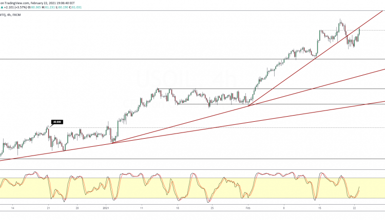 To the upside, oil prices will be battling the confluence of the horizontal resistance level and the trendline around the 60.87 region.