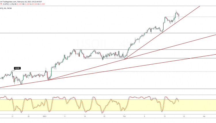 The main support level is near the 57.35 level. A close below 60.87 could potentially see the short term correction taking place.