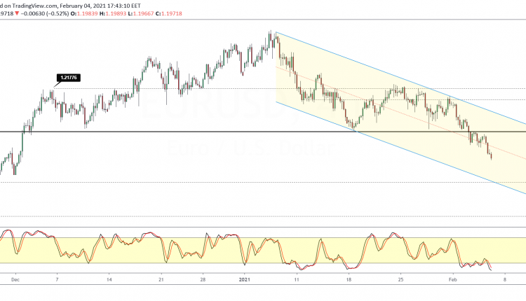 The current pace of decline opens the downside target to the 1.1900 level of support. But in the near term, the common currency could reverse losses.