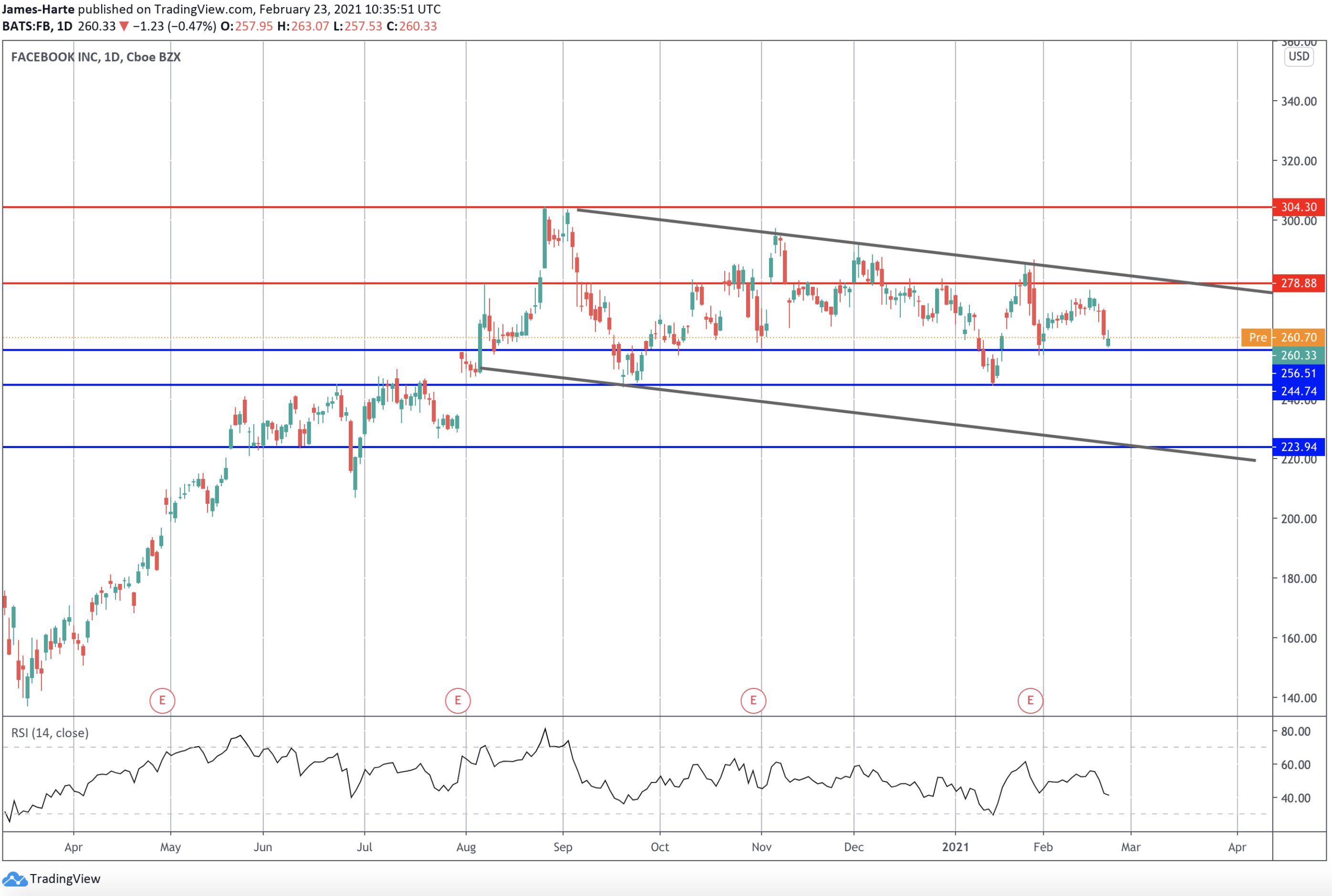 Currently, shares in the Mark Zuckerberg owned company are trading around the mid 260 level down from the mid 285 highs posted in January.