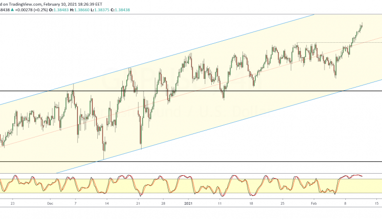 The British pound sterling continues to rise higher, marking a new high of 1.3866 intraday. But price action is pulling back after testing this level.