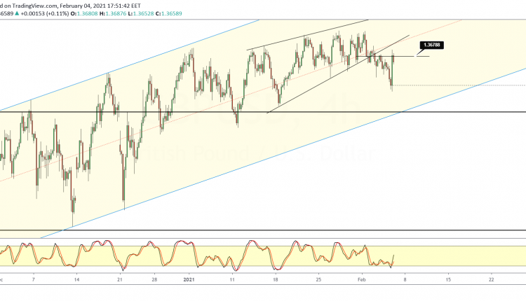 As a result, the GBPUSD was back near the ascending wedge breakout level of 1.3678.