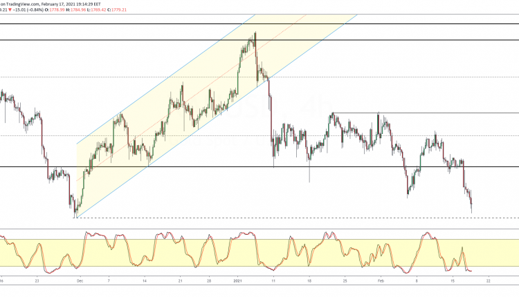 However, if the precious metal loses this support, we could see prices potentially falling to the next key support level near 1650.
