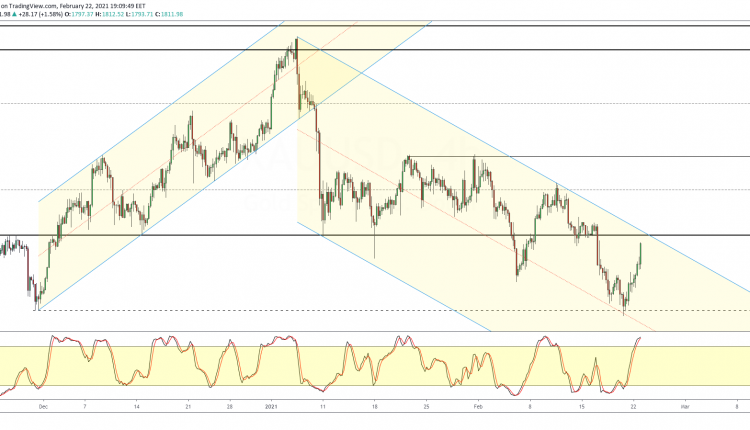 Despite the current gains, XAUUSD will need to breakout above the 1817.79 level of resistance. A breakout above this level will also push price action out from the falling price channel.