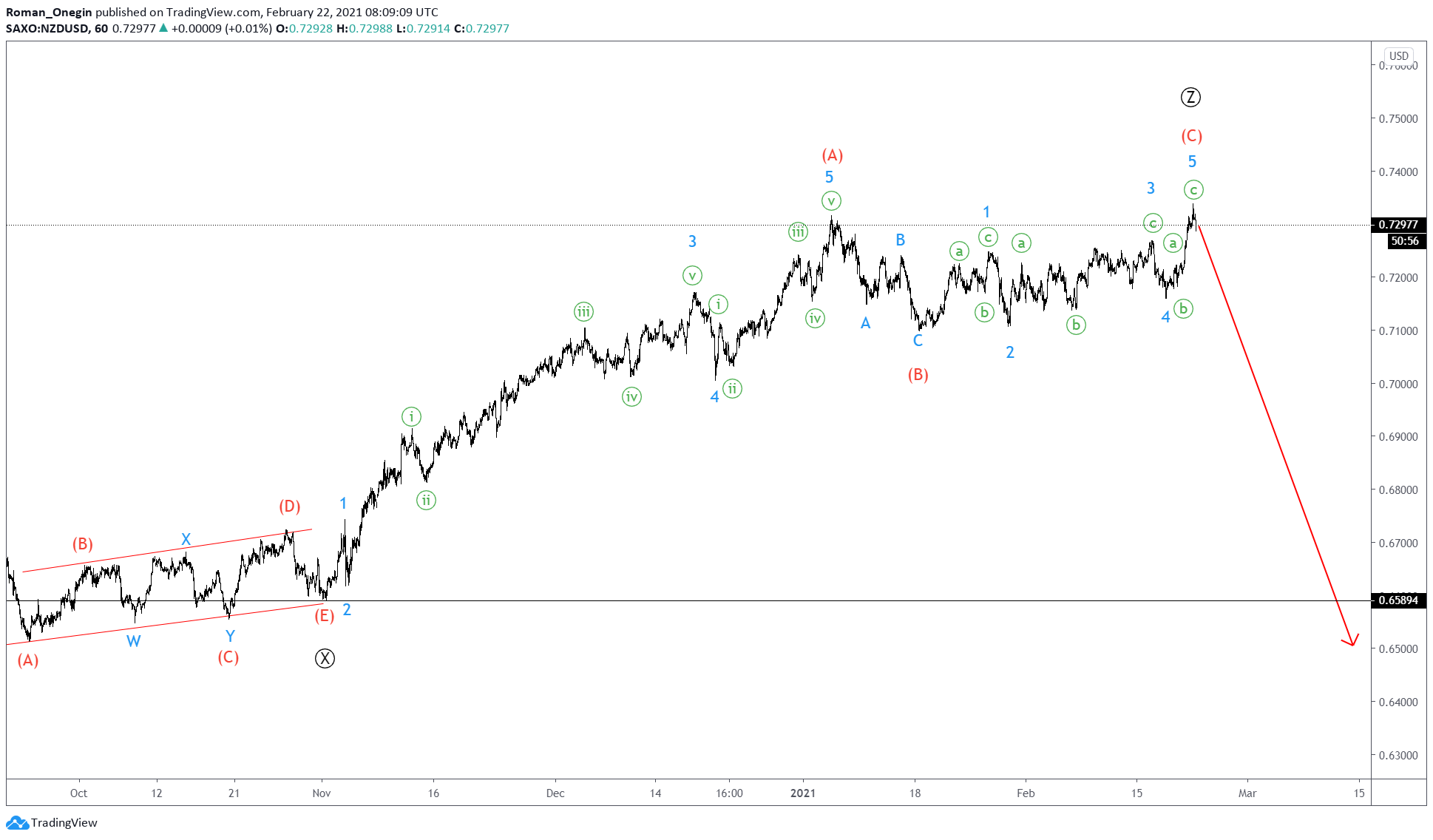 The current NZDUSD formation hints at the construction of a triple zigzag of the primary degree.