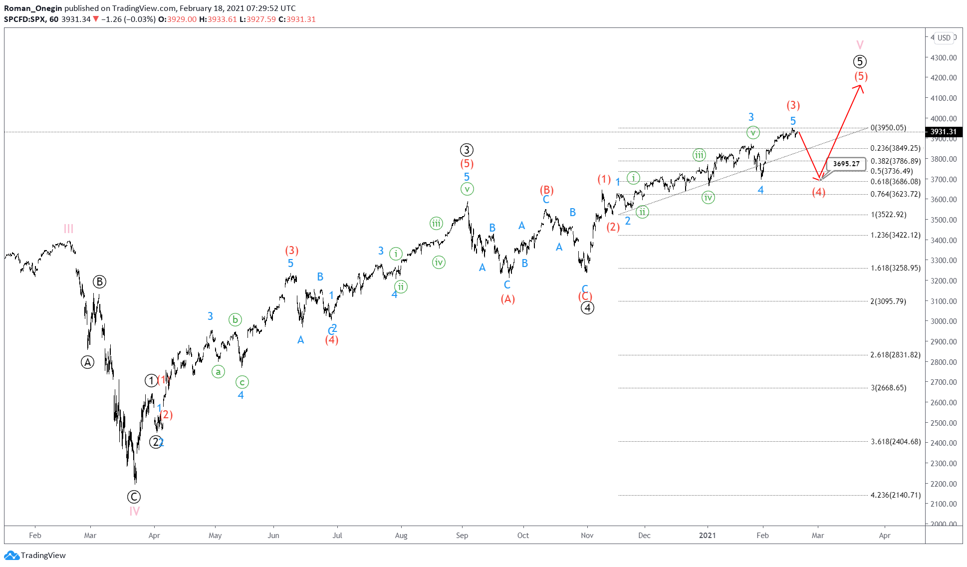 The current SPX500 structure suggests that a bullish cycle impulse is currently under development.