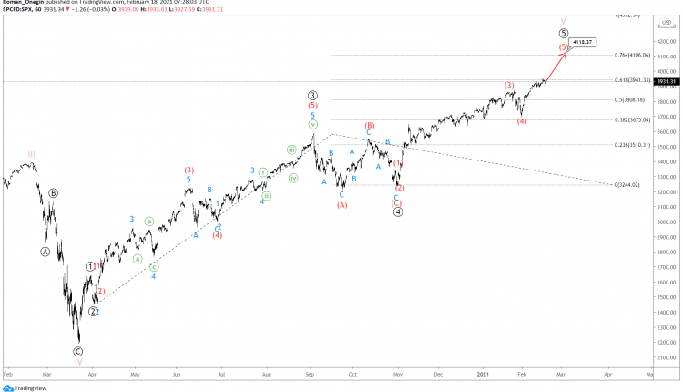 With wave (5) rising, prices are likely to reach a height of 4118.37.