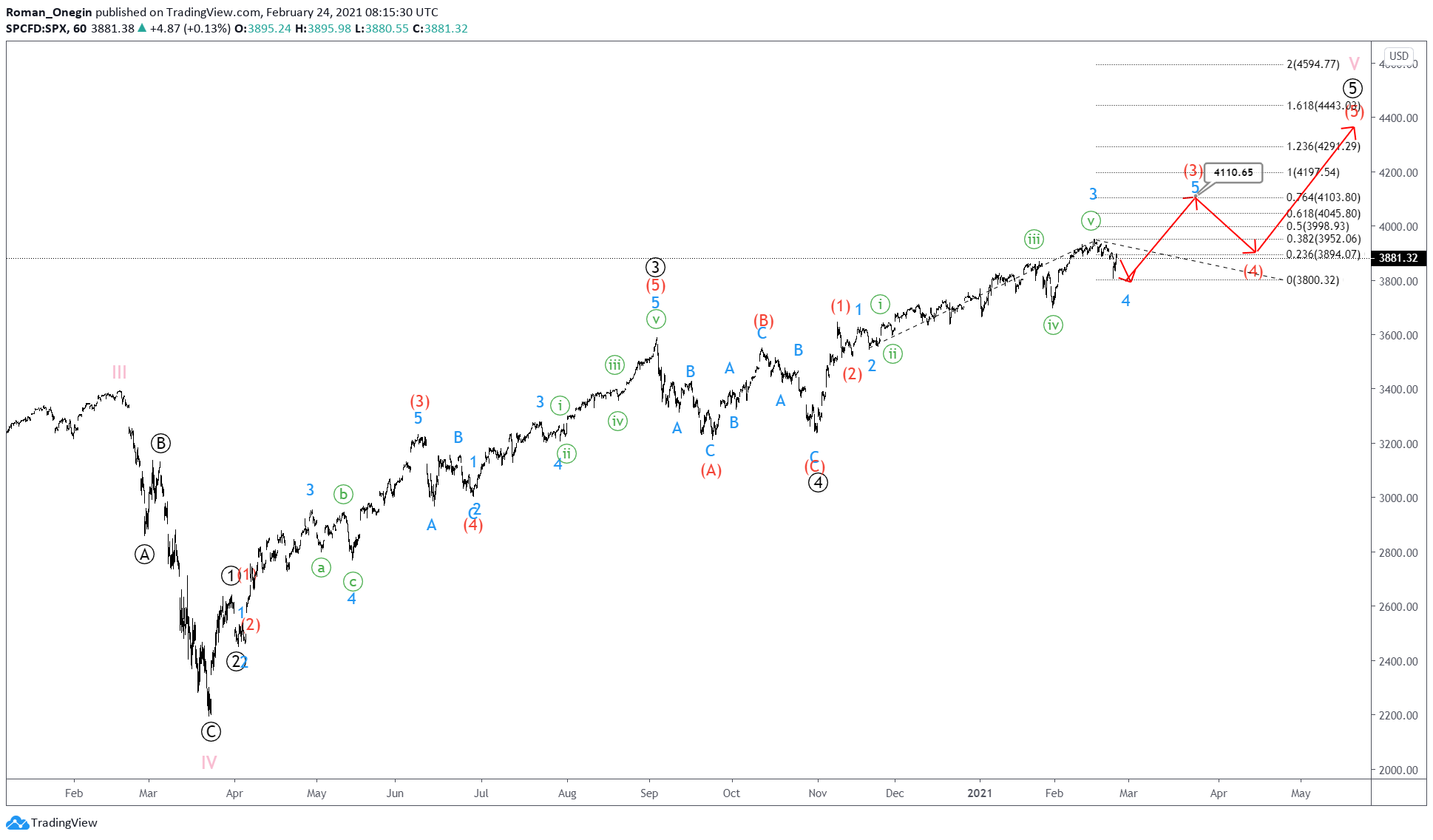 Finally, wave (5) can update the previous high of 3952.93.