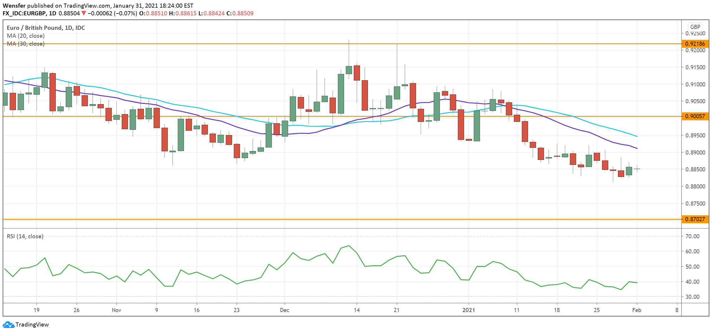 Following a drop below 0.8870, the pair is heading towards 0.8700. 0.9000 is the immediate resistance in case of a rebound.