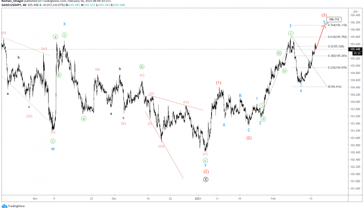 USDJPY shows a large intervening wave Ⓧ of the primary degree, which took the form of a bearish triple zigzag.