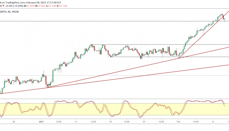 The next main support level near 53.77 will be the level to watch. For the moment, watch how the daily price action will unfold near the current highs.