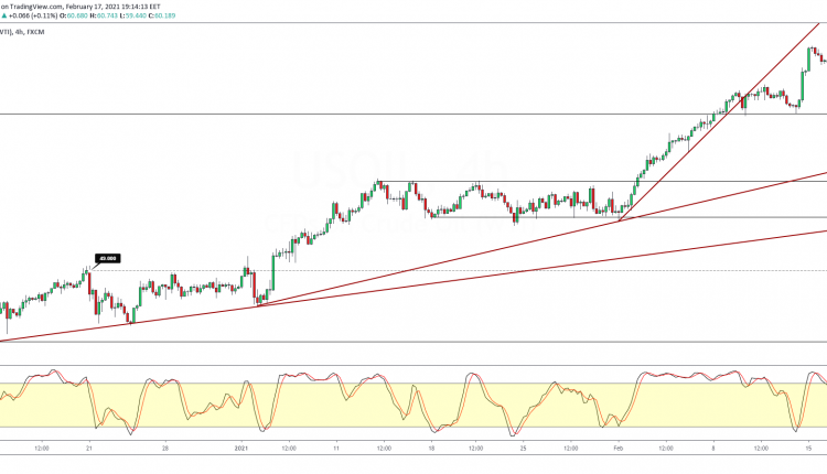 But this could change if oil prices close below Tuesday’s low of 59.31. This will potentially confirm the downside for the short term. The long term trendline will act as support in case of such a move.