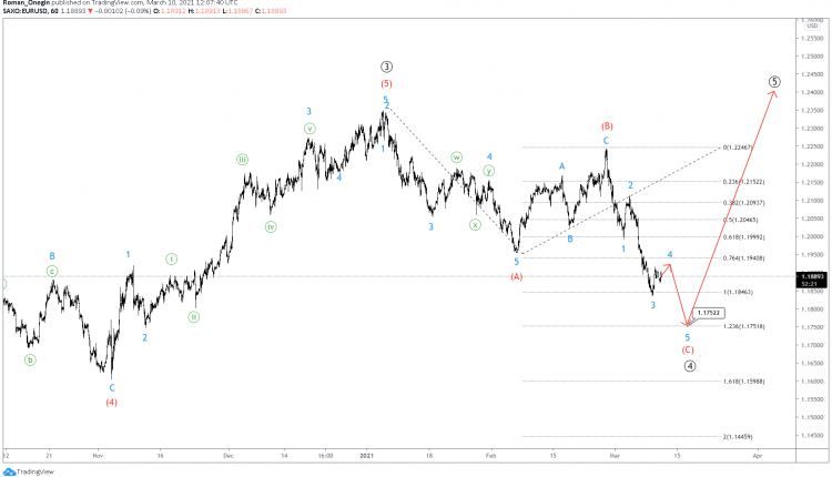 The current EURUSD structure hints at the formation of a large primary corrective wave ④.