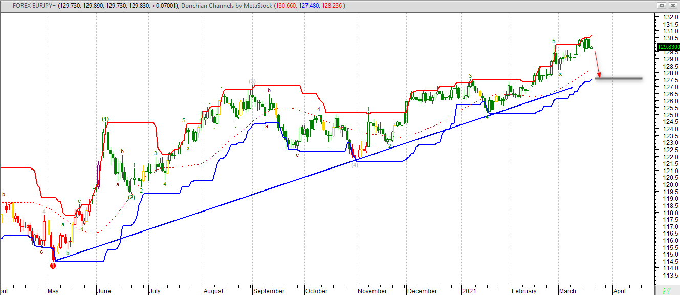 L’importante progressione rialzista proposta sul finire della scorsa ottava ha trovato per il cambio EURJPY uno stop in area 130.50, raggiunto in “boost” seguito alla rottura della resistenza a 127.50 che in precedenza aveva sempre mostrato forte attrattività per le quotazioni, assumendo ruolo di supporto. Un’eventuale rottura rialzista di quota 130,50 proporrebbe un nuovo up-side con livello target stimato appena sotto quota 132. Al ribasso, invece, quota 127 assume al momento garanzia di supporto e che, nel caso venisse meno, implicherebbe nuovi drop, verso area 126 prima e successivamente verso quota 124. Da valutare la componente ciclica, in fase di flesso inferiore, pronta a riprendere la direzionalità rialzista.