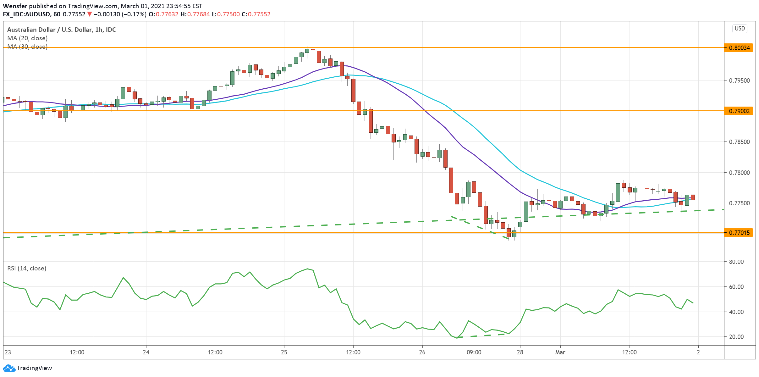 The RSI divergence signaled a loss in the downward momentum as the indicator started to bottom out. A break above 0.7800 could confirm the bullish bias and convince more buyers to chase the gains. 0.7900 would be the target should the pair recoup recent losses.