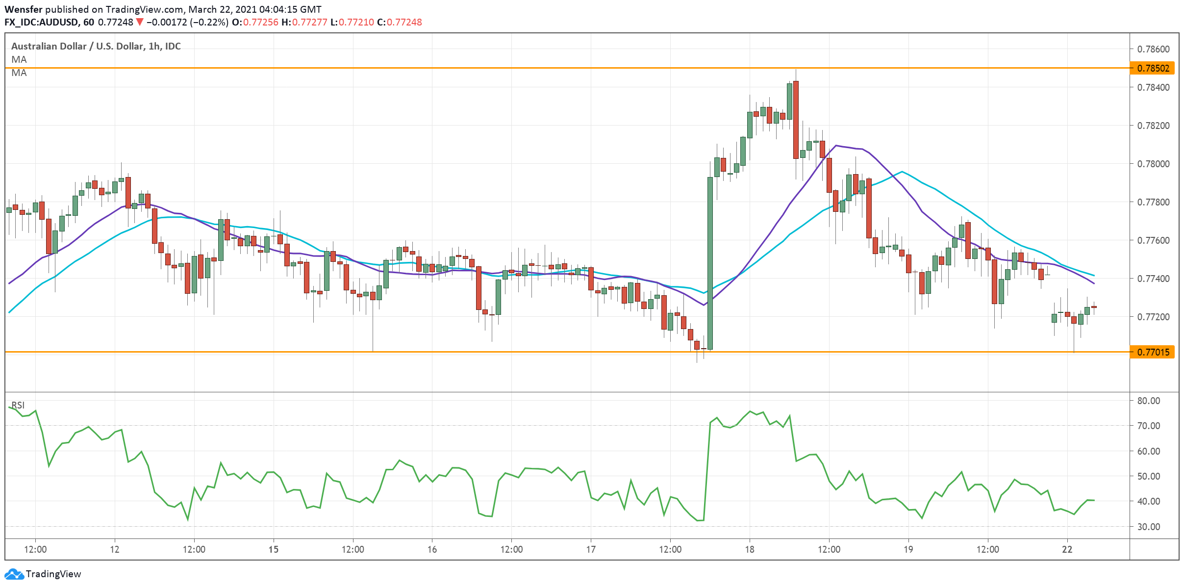 After the RSI shot into the overbought territory post-FOMC, the indicator cooled off as the price came down to test the support at 0.7700.