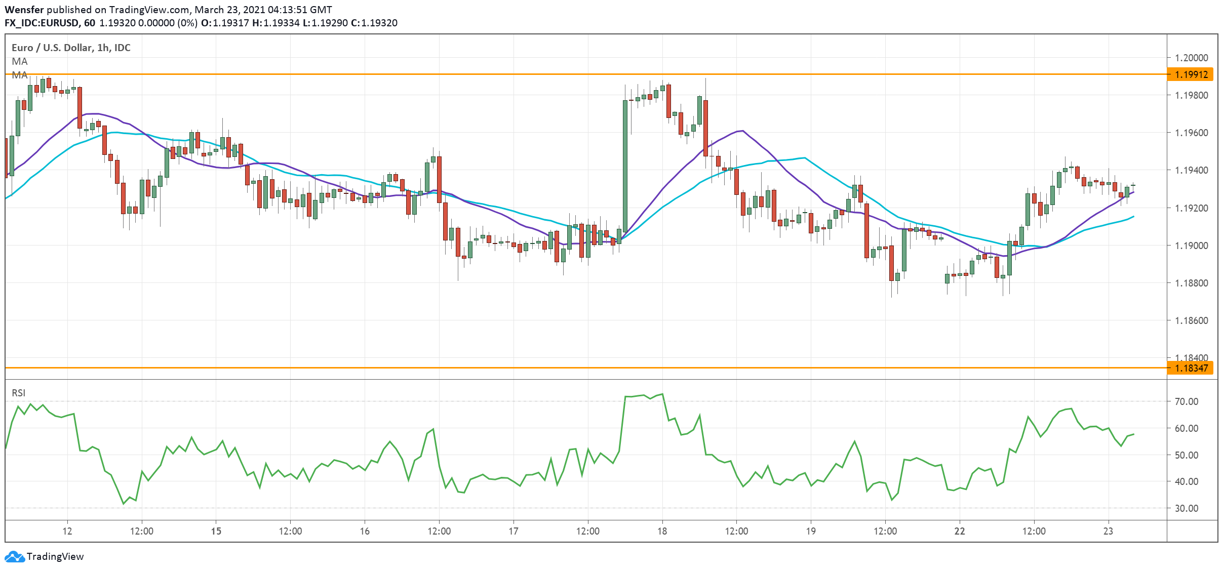 The pair has fallen back from the double top at 1.1990 after it went into an overbought situation. The euro is looking for support while hovering above the major demand area around 1.1830.