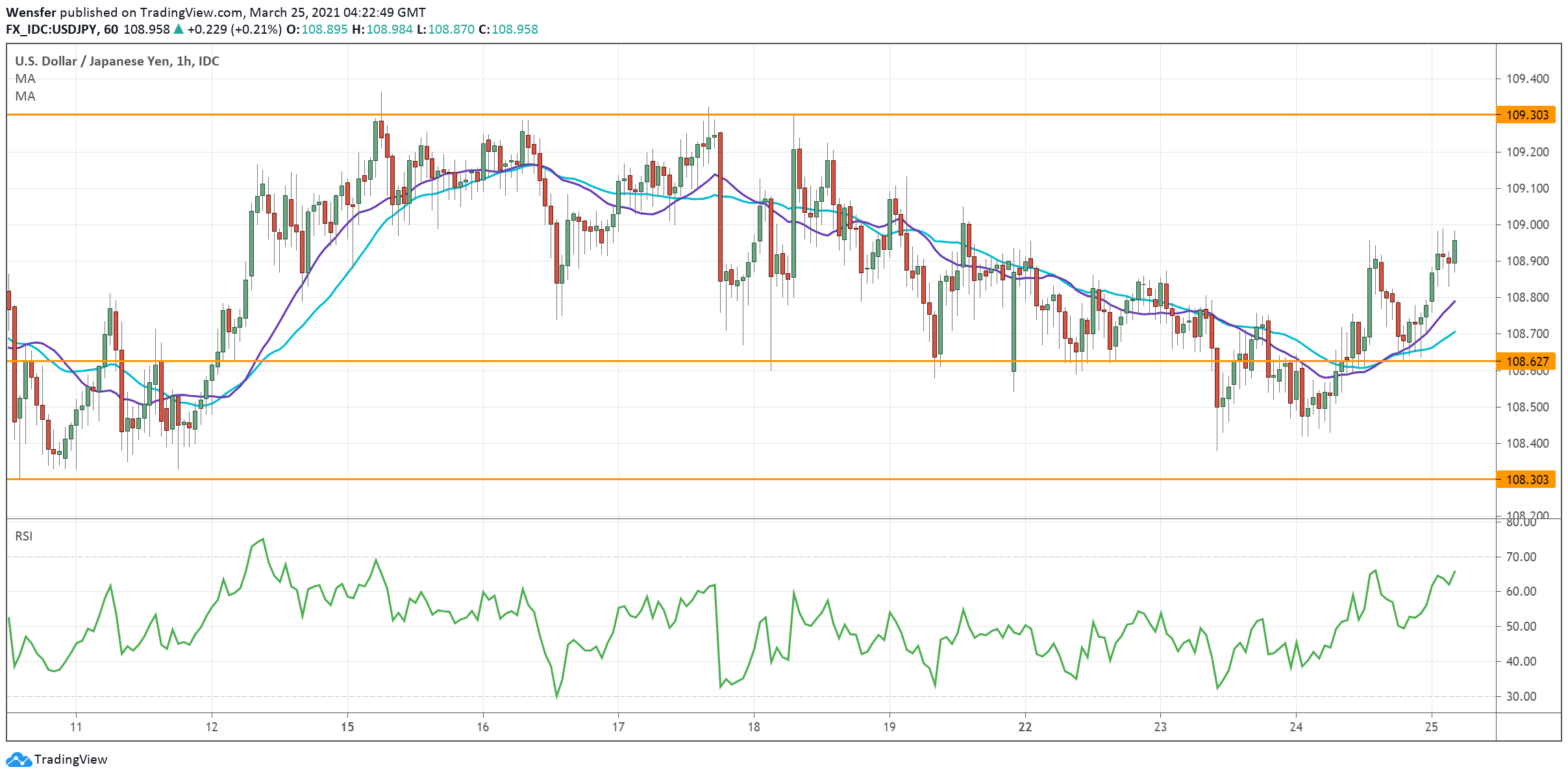 The latest momentum above 108.85 suggests that buyers are still in control and the uptrend might carry on. A close above the intermediate resistance at 109.30 could lead to a broader rally to 110.