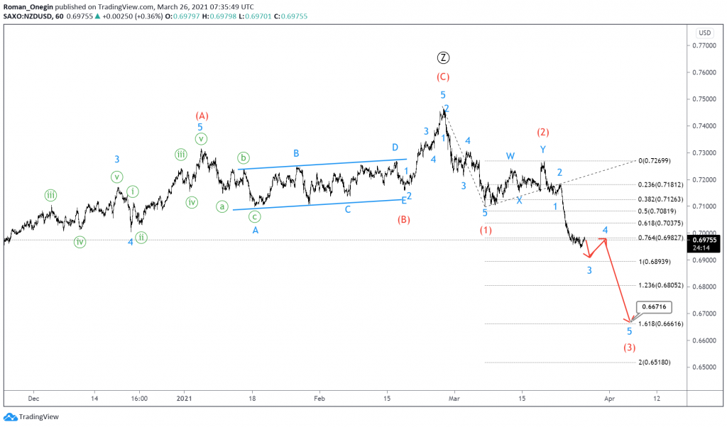 The current NZDUSD pair shows the completion of a bullish triple zigzag consisting of primary sub-waves Ⓦ-Ⓧ-Ⓨ-Ⓧ-Ⓩ.