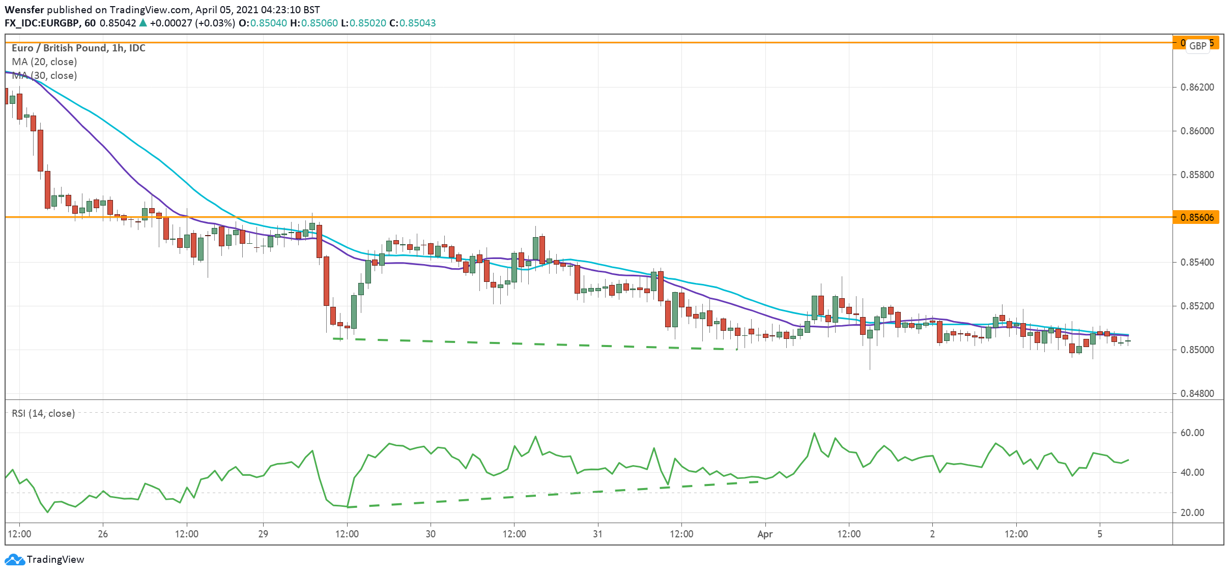 On the downside, a close below the psychological level of 0.8500 would send price towards 0.8450 as trend followers double the pressure.